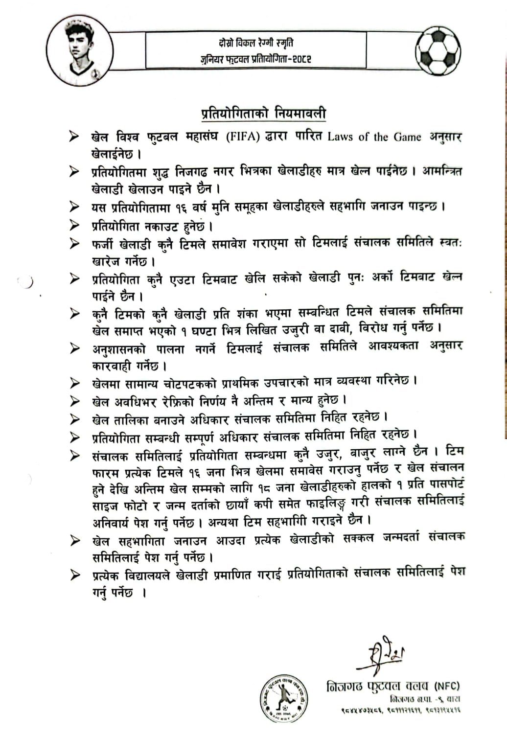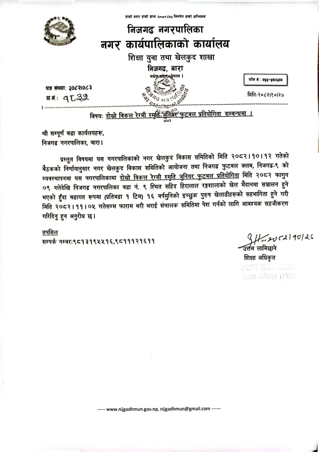 दोस्रो विकल रेग्मी स्मृति जुनिबर फुटबल प्रतियोगिता सम्बन्धमा ।