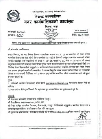 रिक्त पदमा स्थायी शिक्षक सरूवा सम्बन्धी सूचना वडा नं ४।