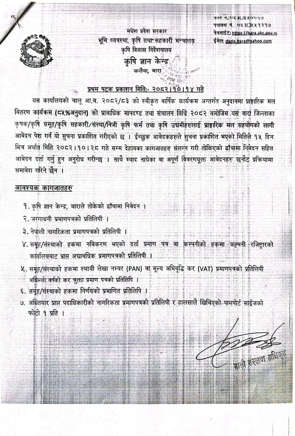 भूमिगत सिंचाई व्यबस्थापन सहयोग कार्यक्रमका लागि आवेदकले पेश गर्ने निवेदन सम्बन्धि सूचना