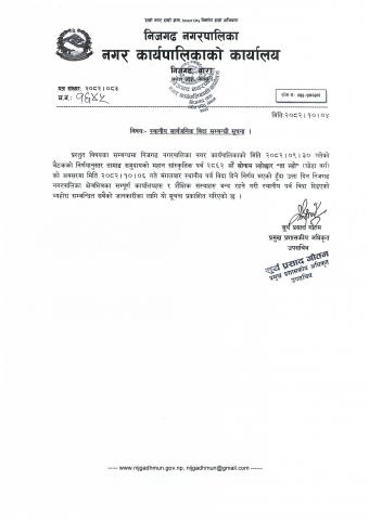 स्थानीय सार्वजनिक विदा सम्बन्धी सूचना।