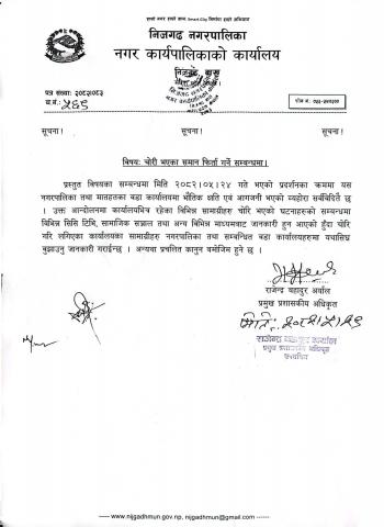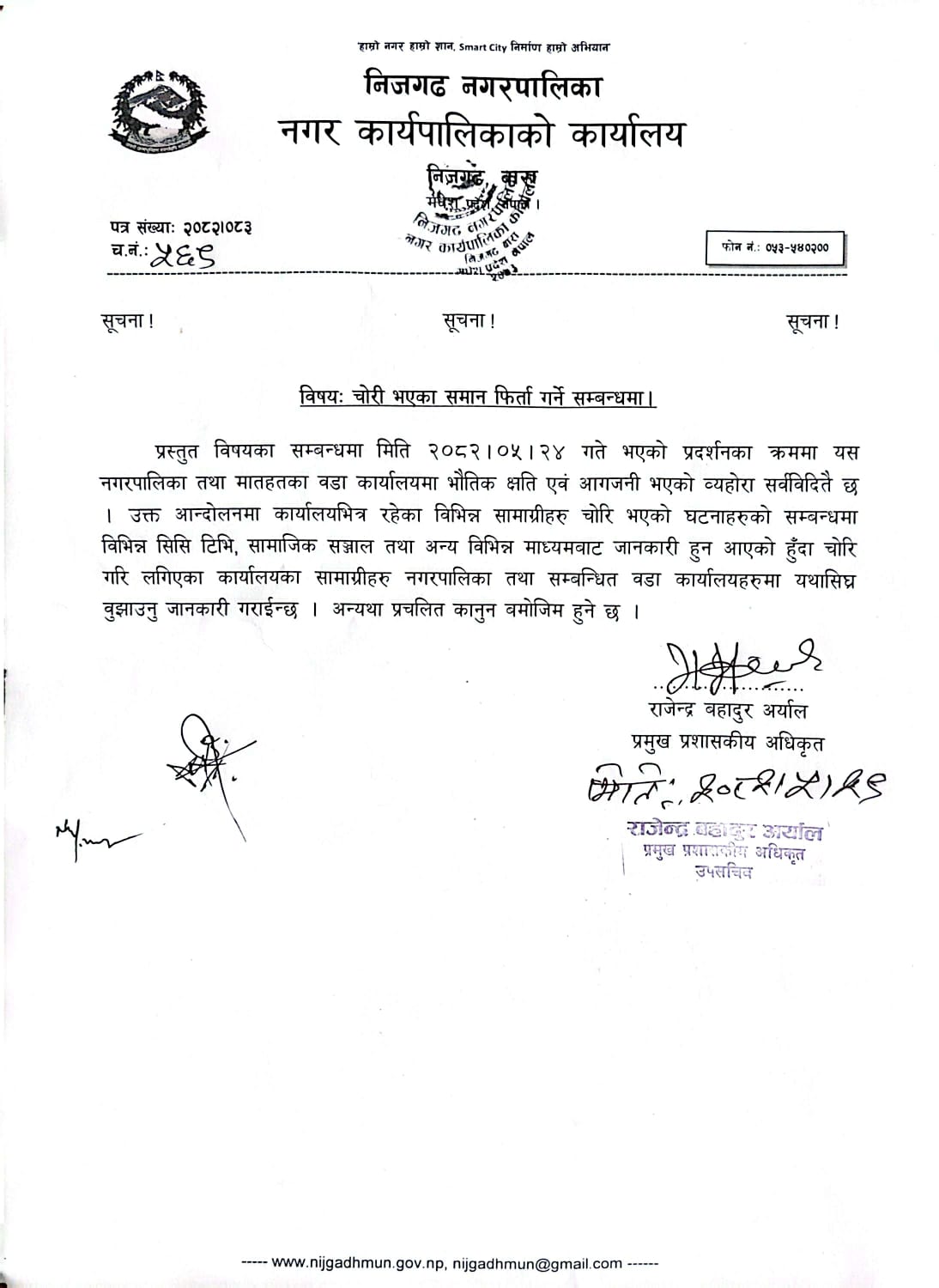 » चोरी भएका समान फिर्ता गर्ने सम्बन्धमा।