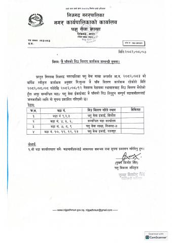 नगरपालिकाका निर्णयहरु