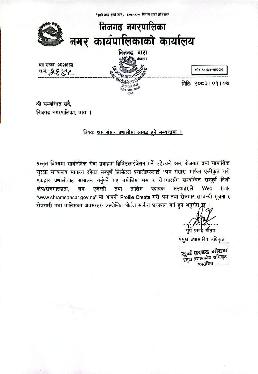 निजगढ नगरपालिकाको आ.व.२०८२/०८३ को विभिन्न कार्यको विधुतीय बोलपत्र आह्वान सम्बन्धी सूचना ।