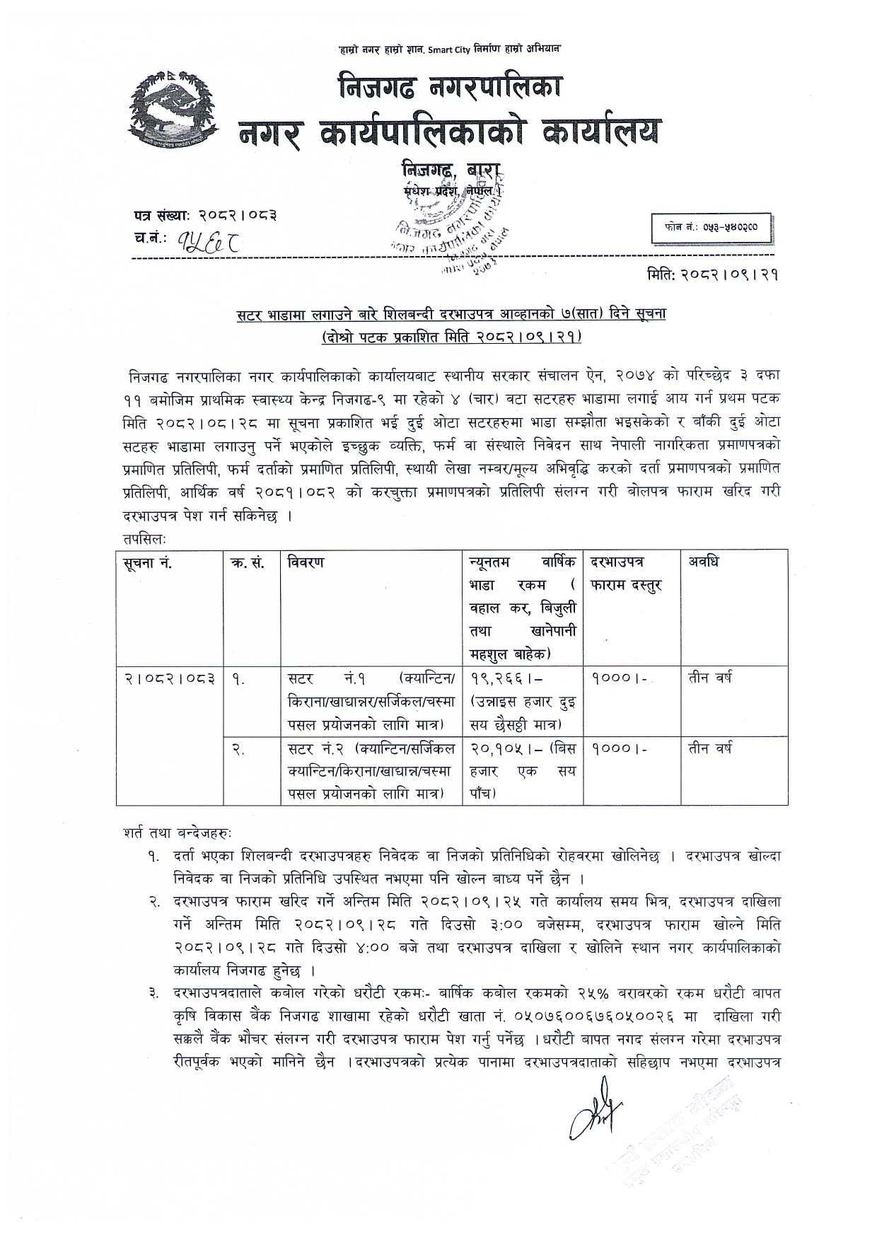 सटर भाडामा लगाउने बारे शिलबन्दी दरभाउपत्र आव्हानको ७(सात) दिने सूचना। दोस्रो पटक प्रकाशित मिति २०८२।०९।२१