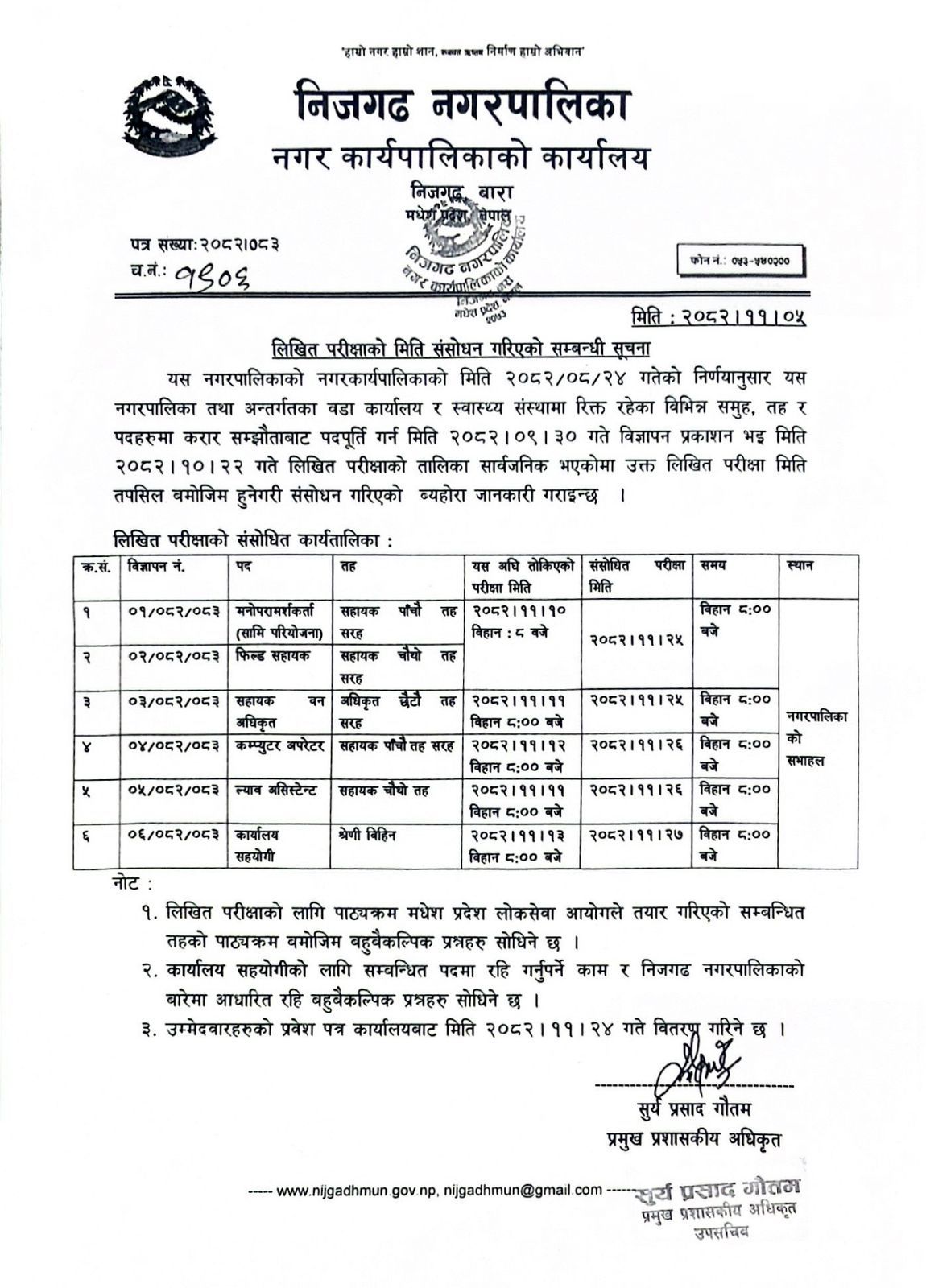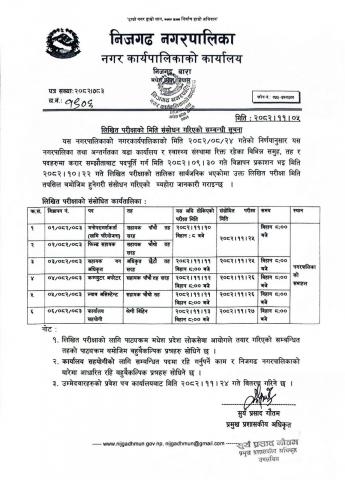 लिखित परीक्षाको मिति संशोधन गरिएको सम्बन्धी सूचना।