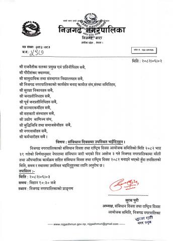 संविधान दिवसमा उपस्थित भईदिनुहुन सम्बन्धमा।