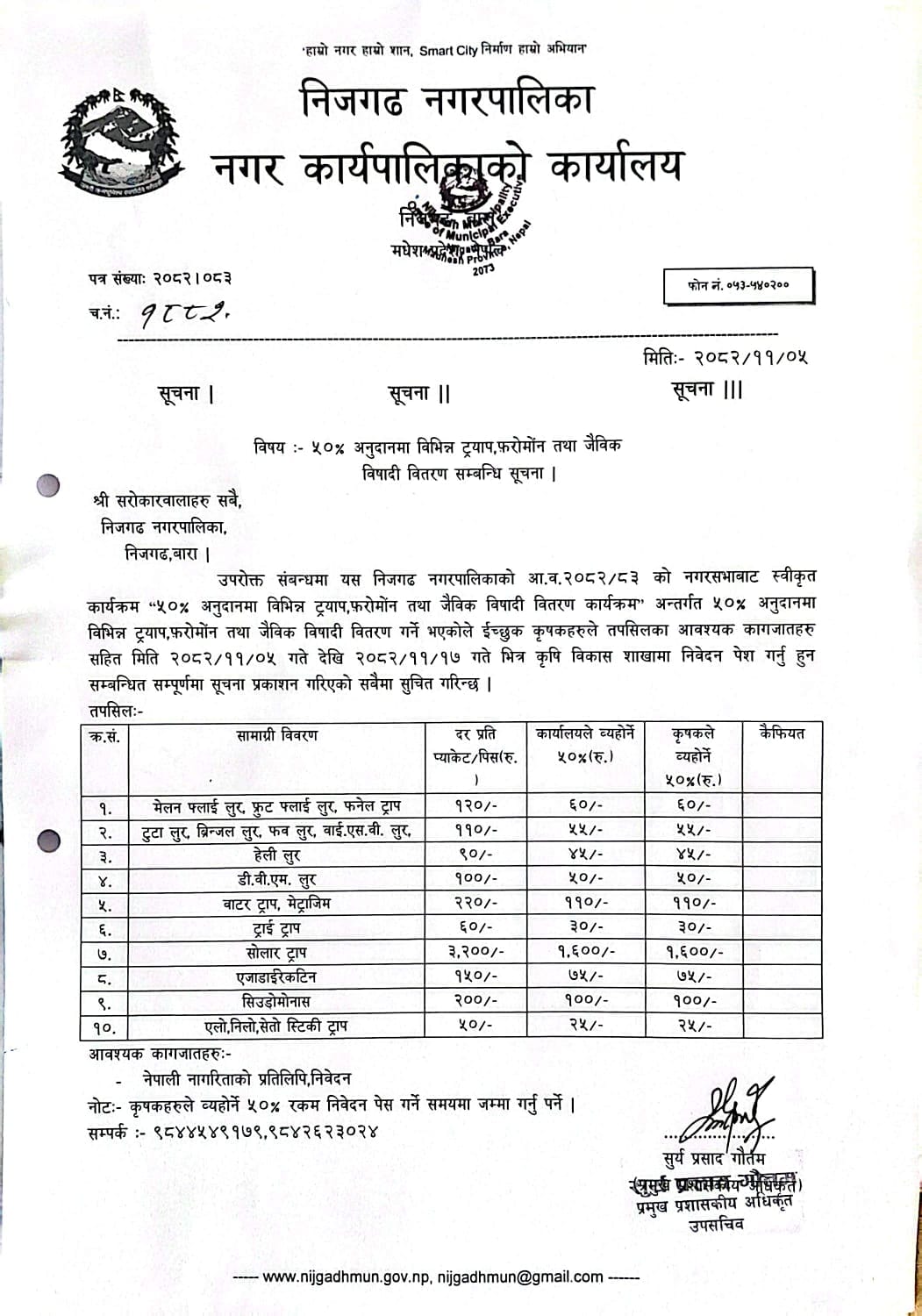५०% अनुदानमा विभिन्न ट्रयाप, फरोमोंन तथा जैविक विषादी सम्बन्धी सूचना। २०८२।११।०५