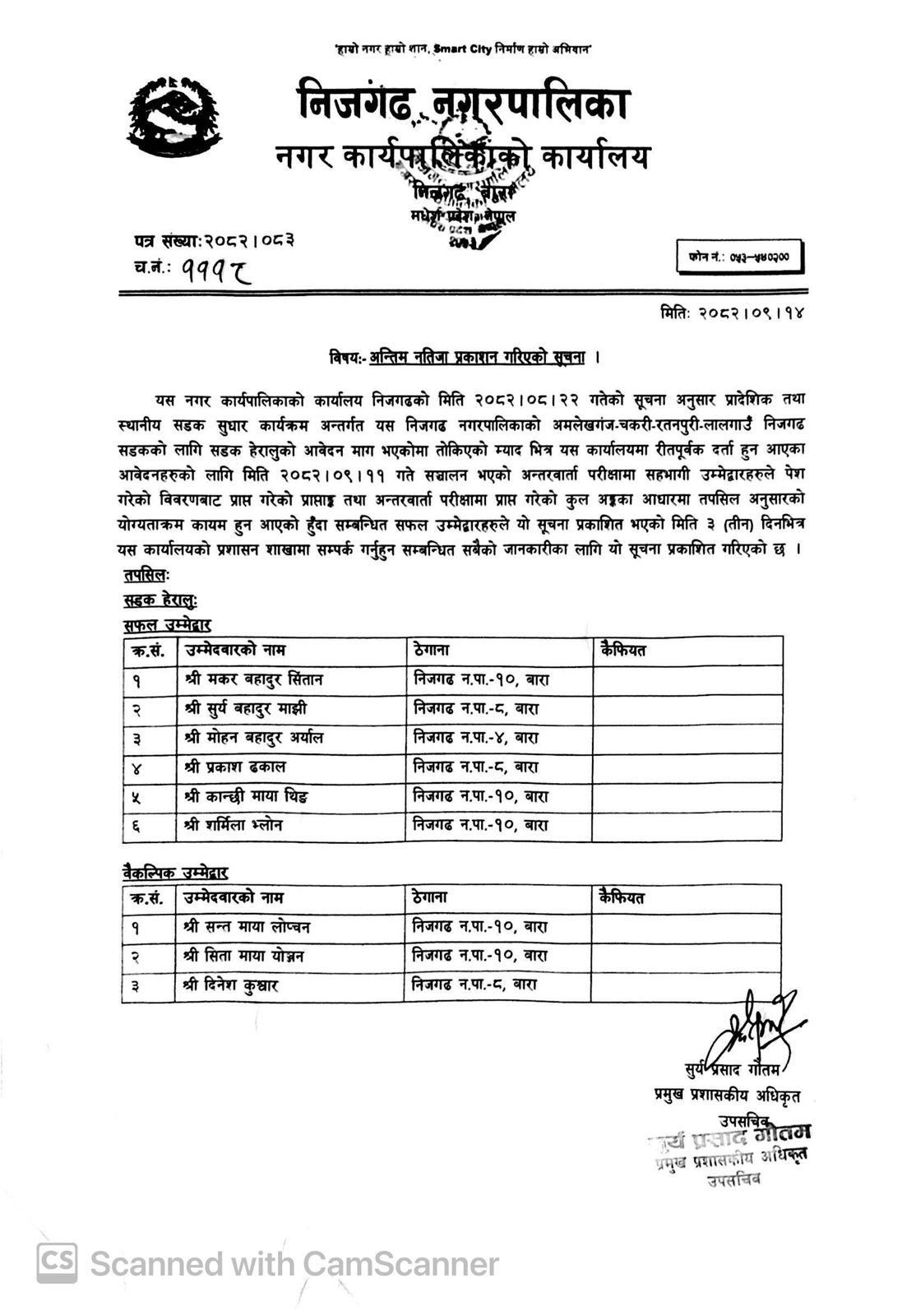 अन्तिम नतिजा प्रकाशन गरिएको सुचना।