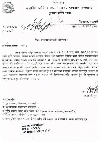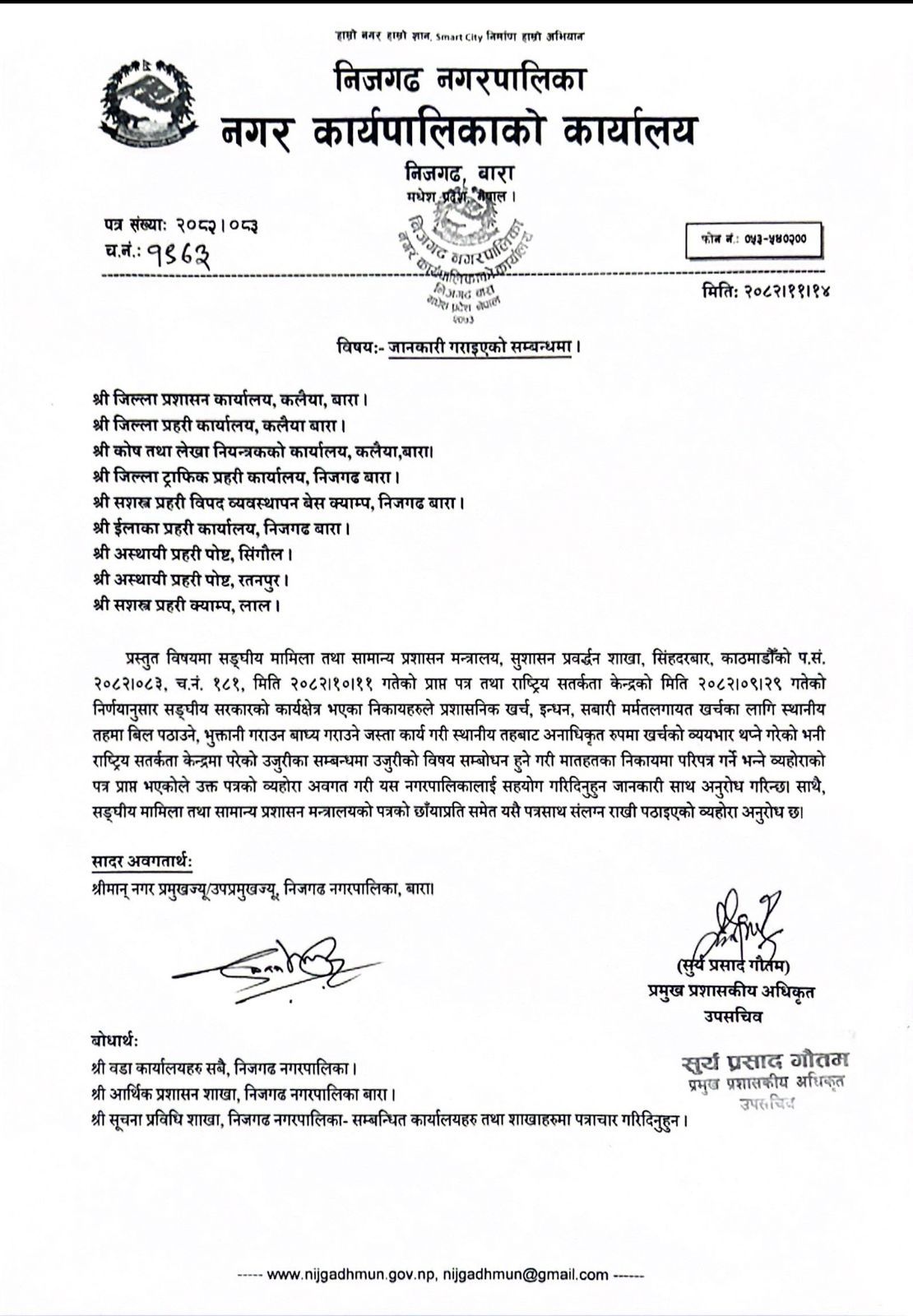 जानकारी गराइएको सम्बन्धमा।