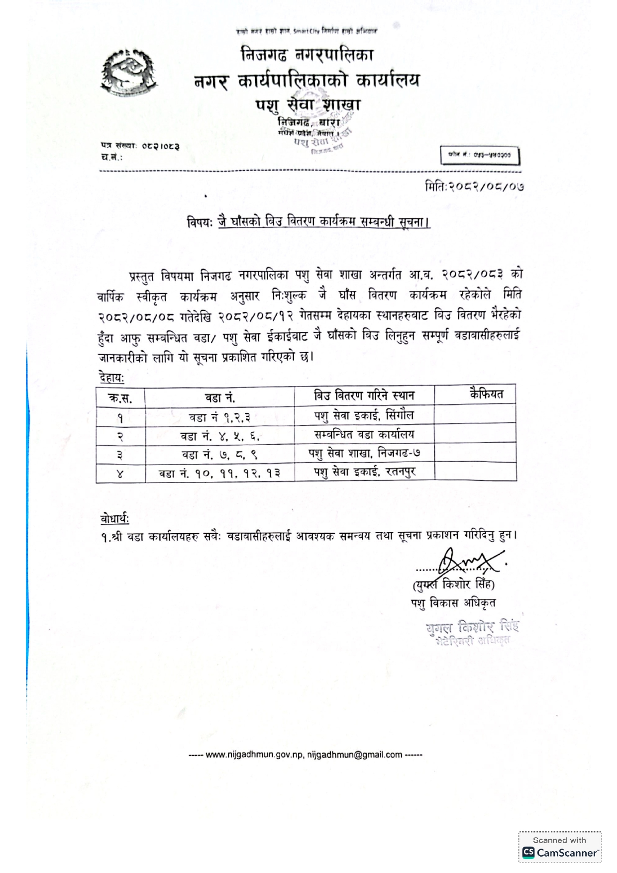 » जै घाँसको बिउ वितरण कार्यक्रम सम्बन्धी सूचना।