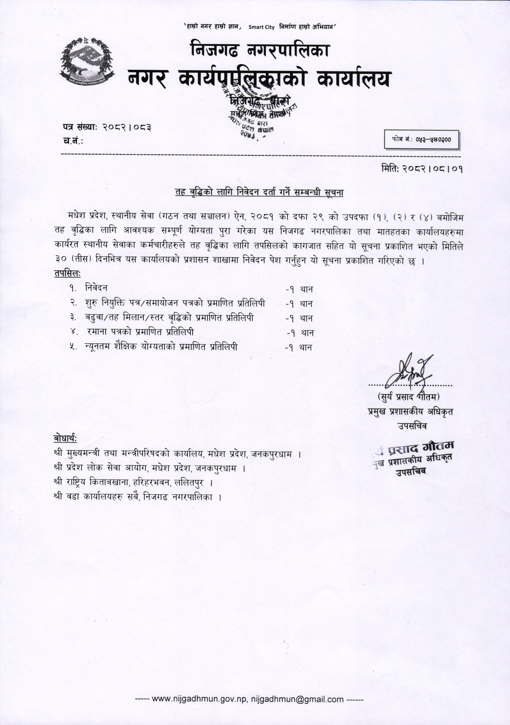 » तह वृद्धिको लागि निवेदन दर्ता गर्ने सम्बन्धी सूचना।
