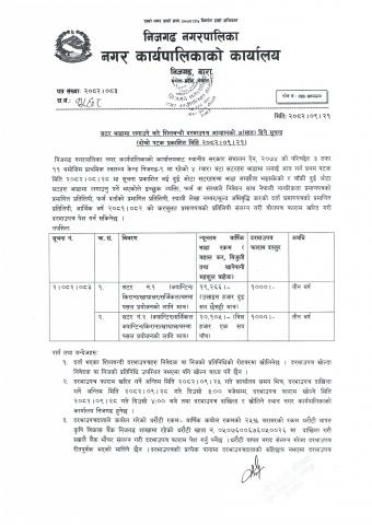 निजगढ नगरपालिकाको कार्यालयको झ्याल, ढोका निर्माण तथा मर्मत सम्बन्धी शिलबन्दी दरभाउपत्र आह्रानको सूचना।